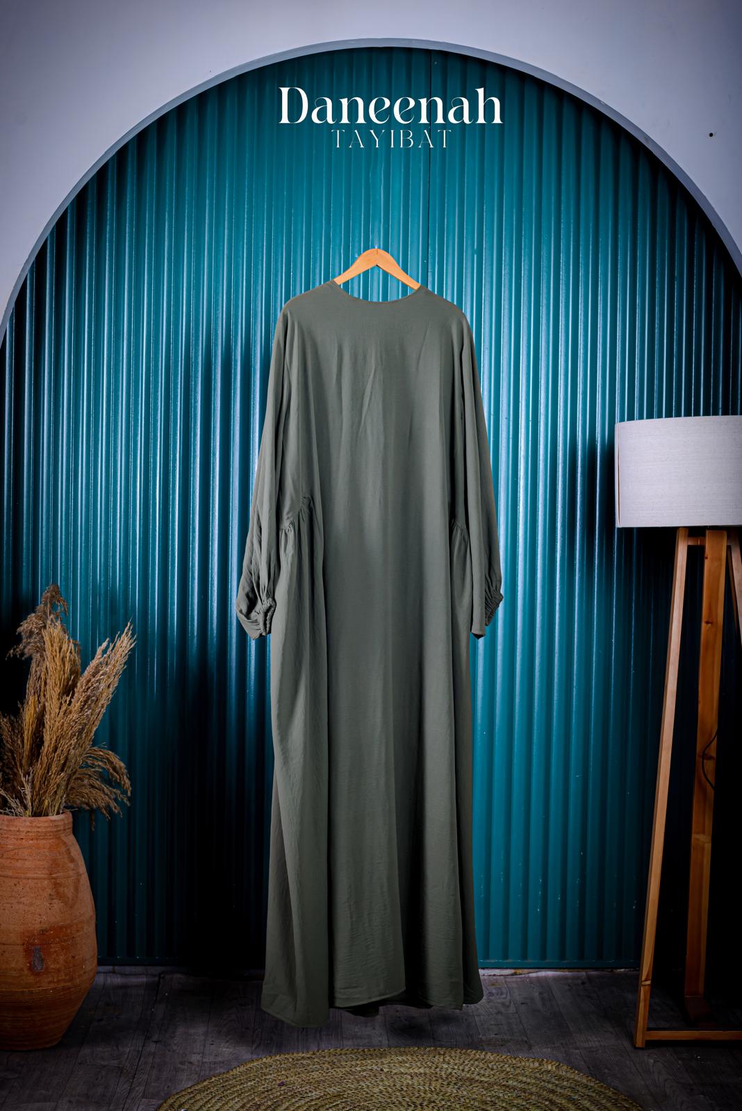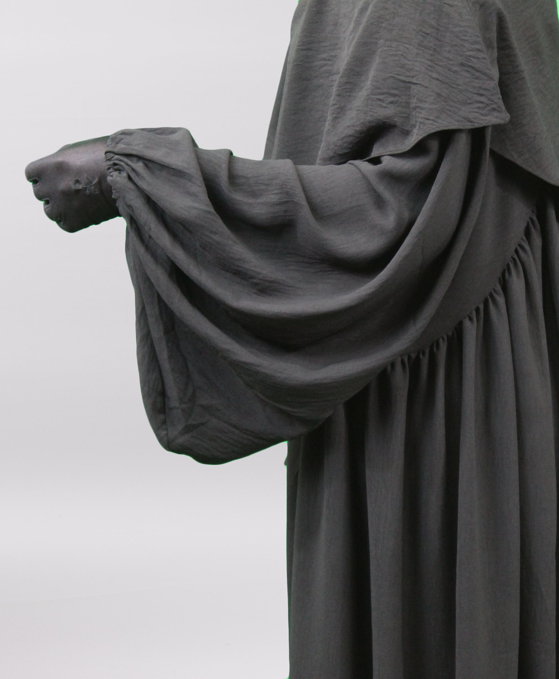 Crafted from premium CEY fabric, the lightweight and breathable material ensures all-day comfort while maintaining an elegant, structured flow. The abaya features large, flowing sleeves for added movement, while the khimar provides full coverage with a graceful fall, complementing the abaya’s fluid silhouette.