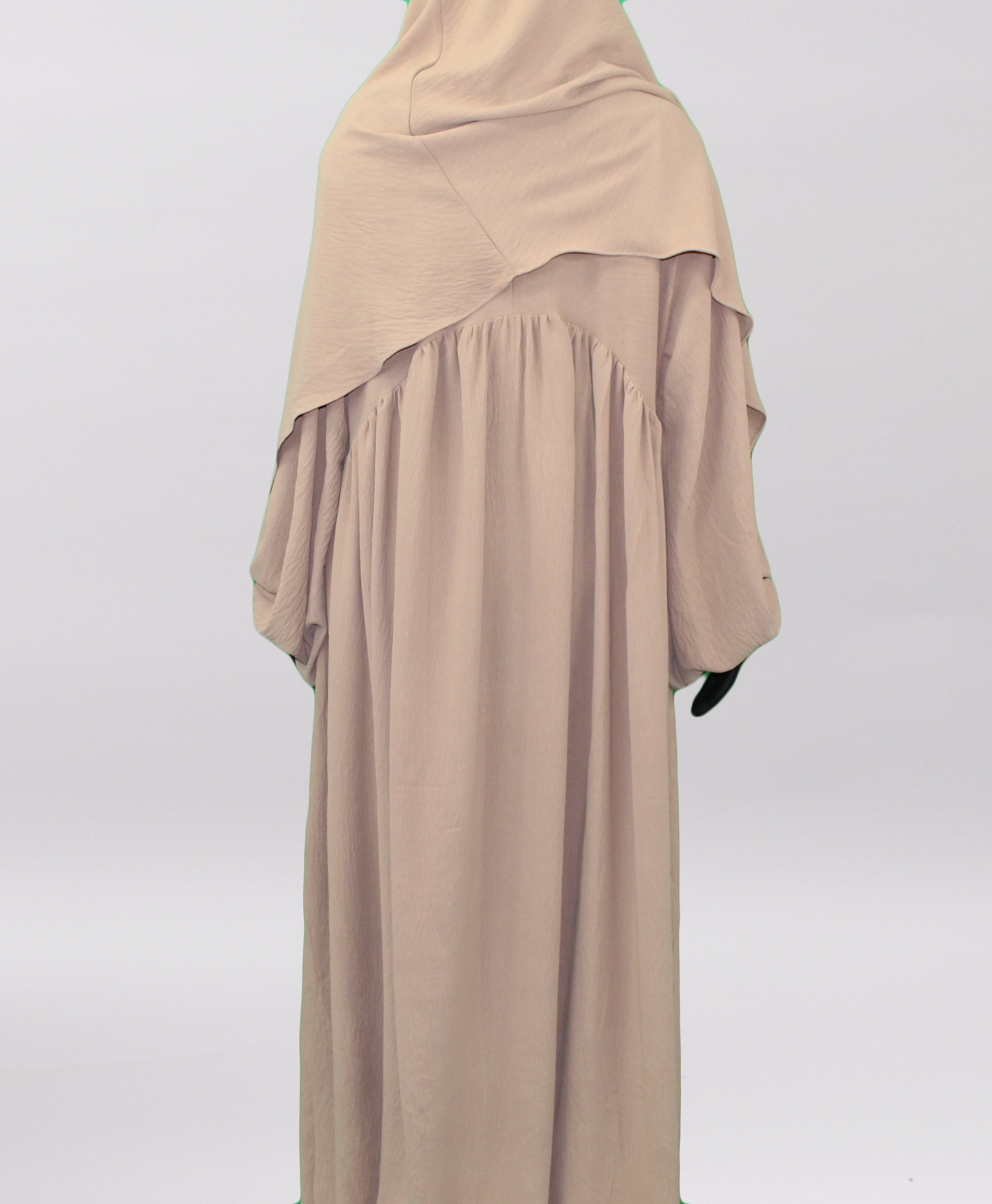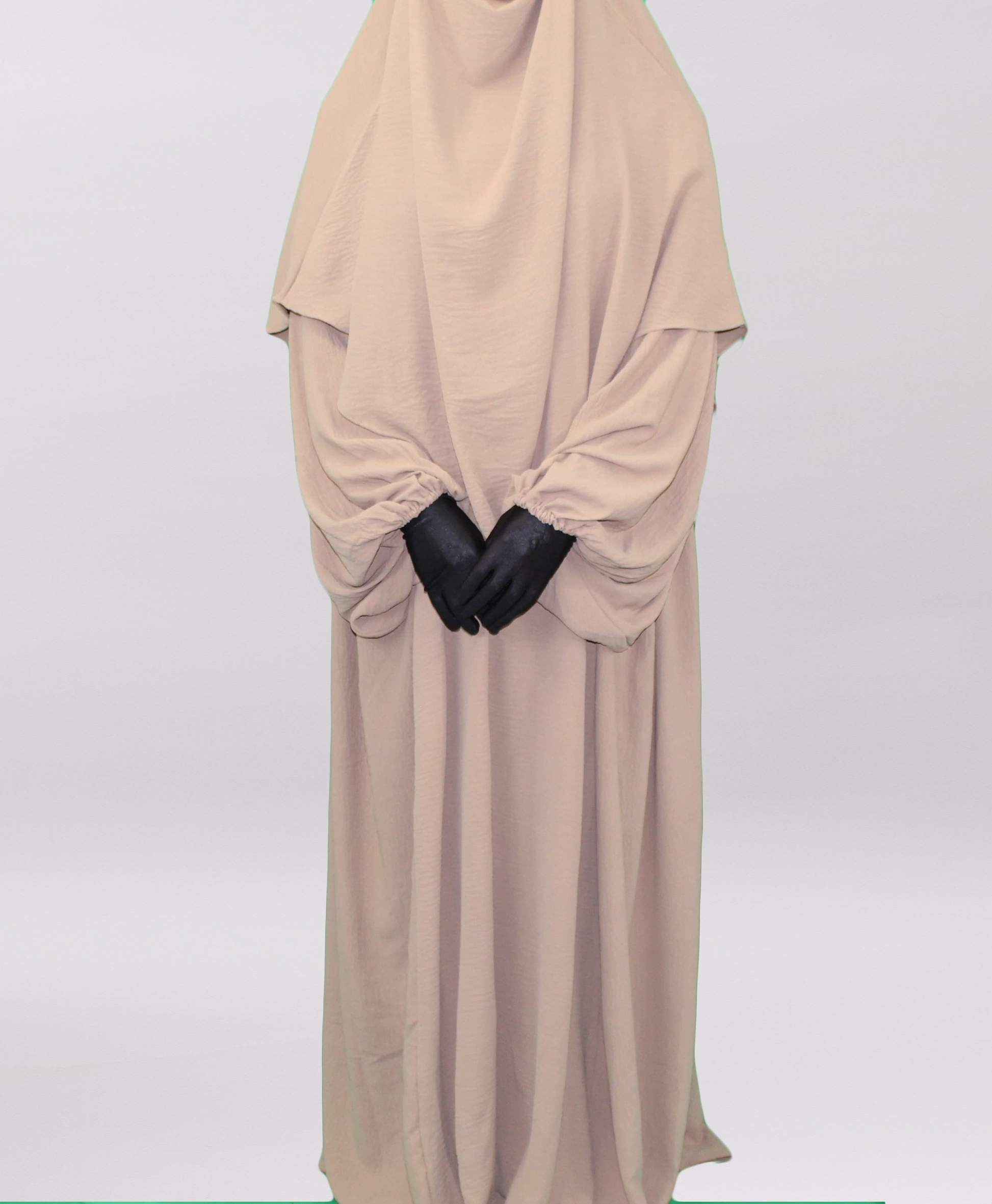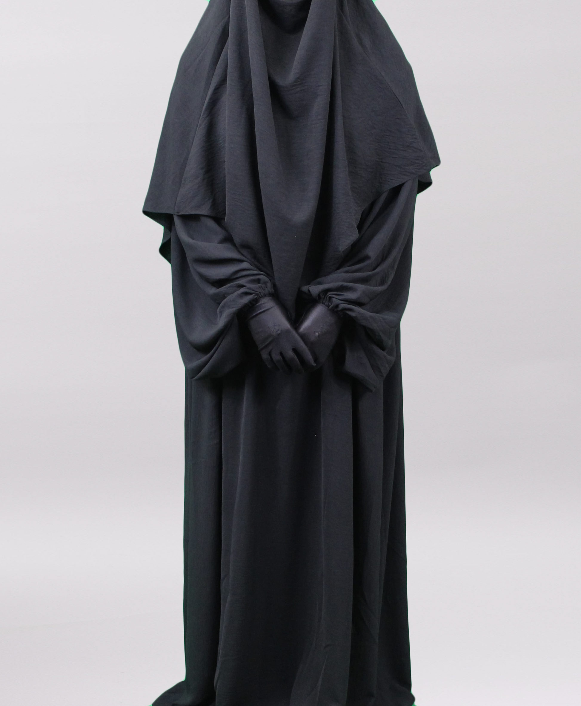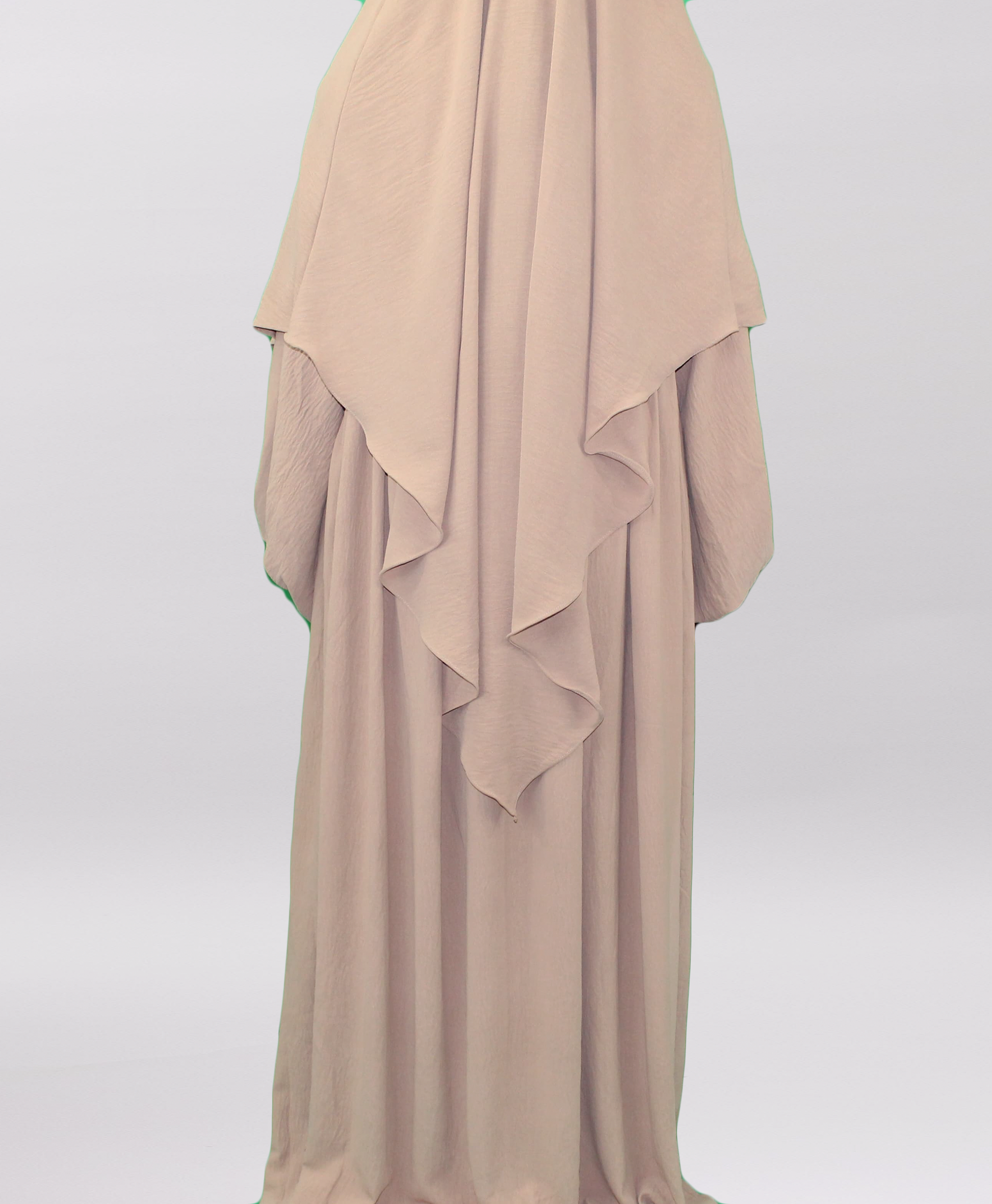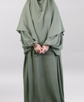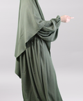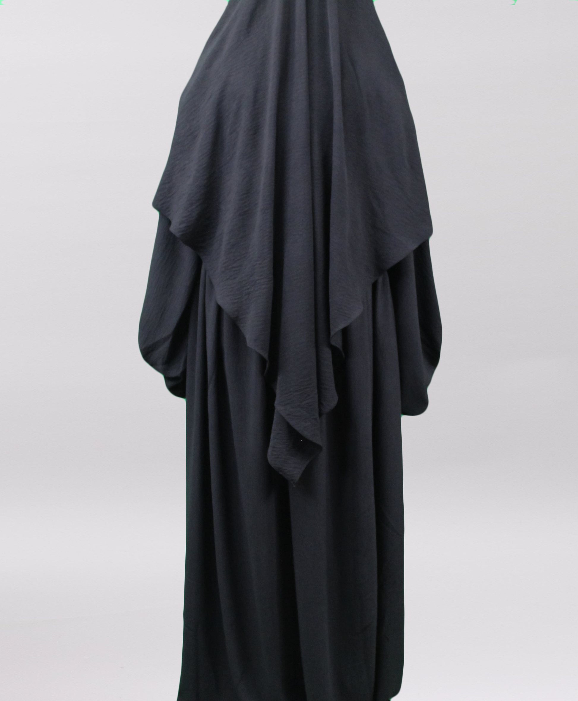 Our 2-Piece Khimar Set, features a flowing abaya and a perfectly matching khimar. Designed for one-size-fits-all convenience, this set offers a comfortable yet modest fit, draping beautifully over all body types.