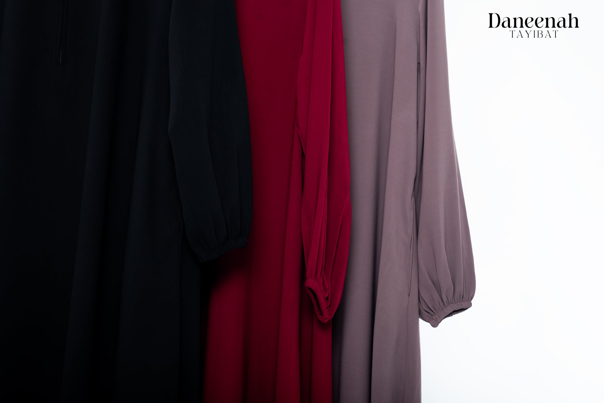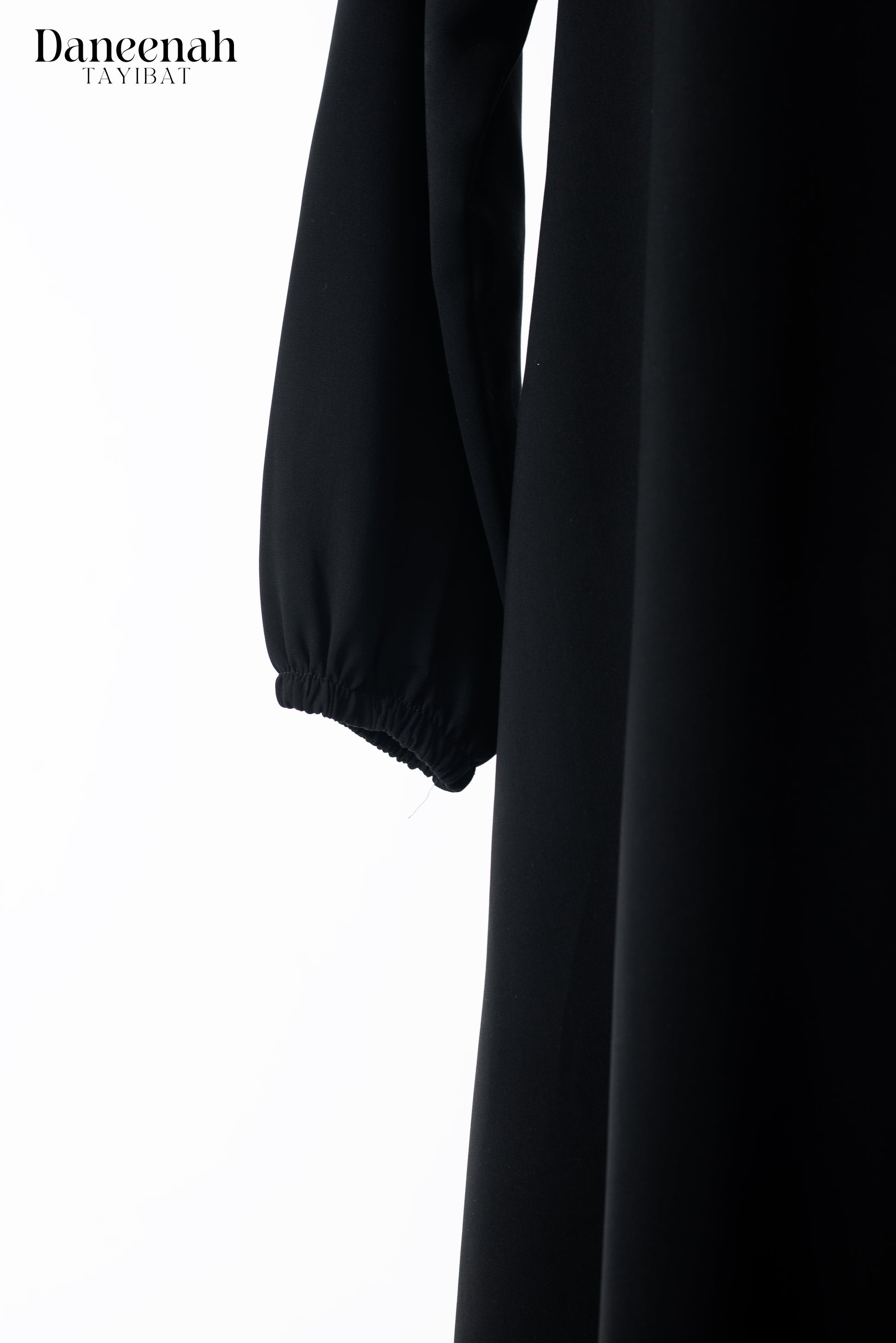 Designed for both elegance and practicality, our Nour Abaya features a beautifully flowing abaya. Made with luxurious Fiona Crepe for a soft yet structured drape, while the black variant is crafted from premium Concord Crepe for a sleek, refined finish.