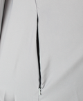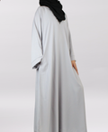 Light grey closed abaya with wide sleeves, zipper pockets, and a loose, a-line fit. perfect to dress up or down.