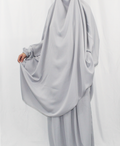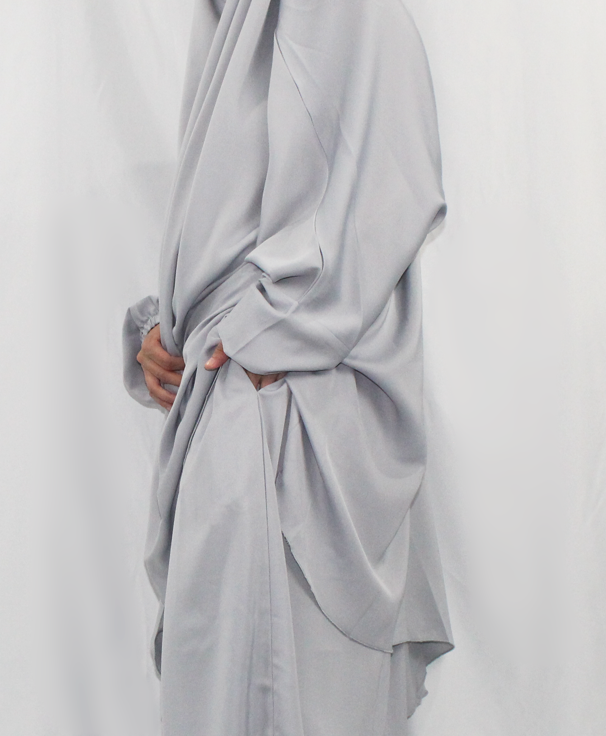 Light grey 2 piece jilbab with elastic cuffs and a hand-stitched skirt.